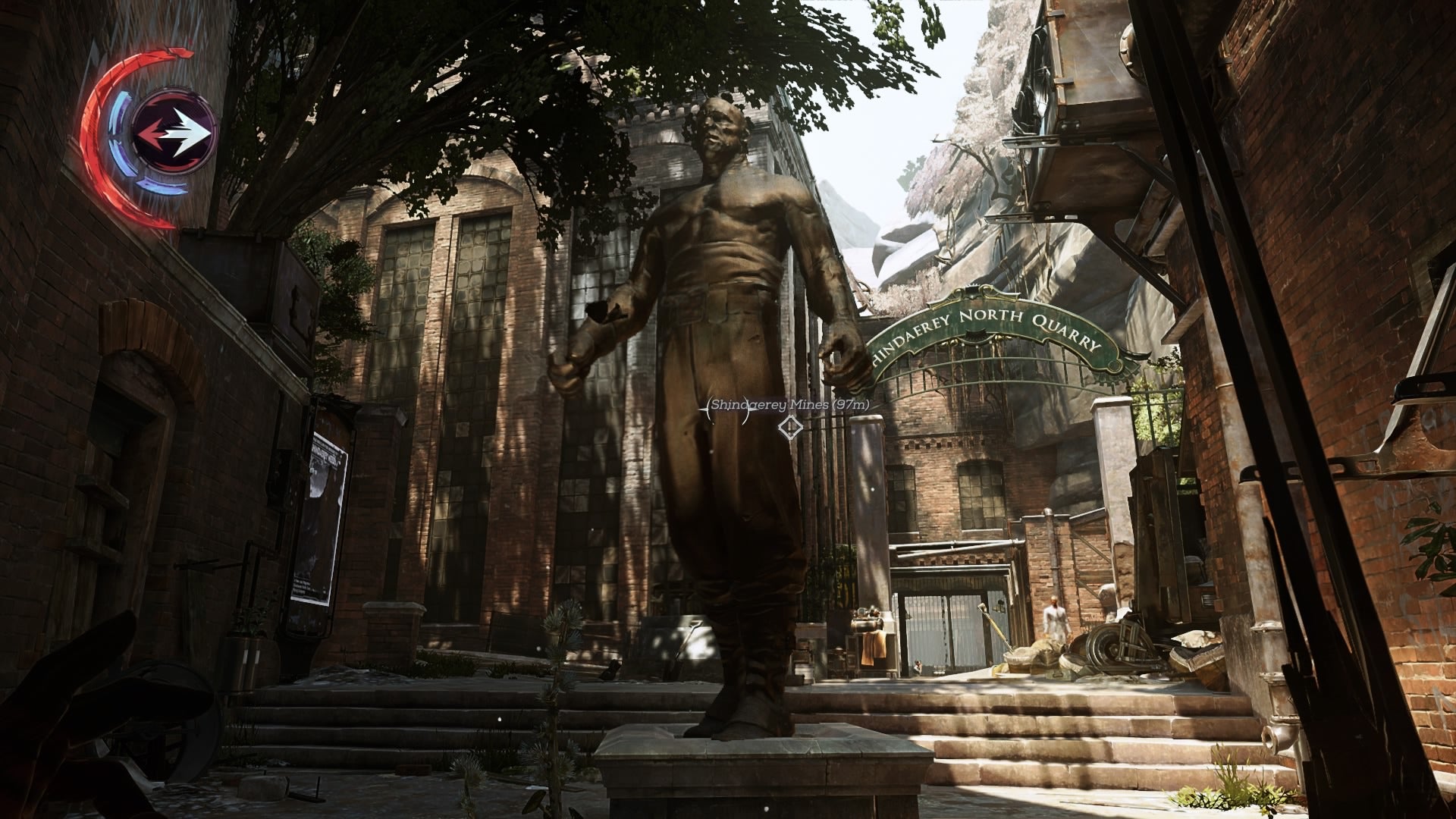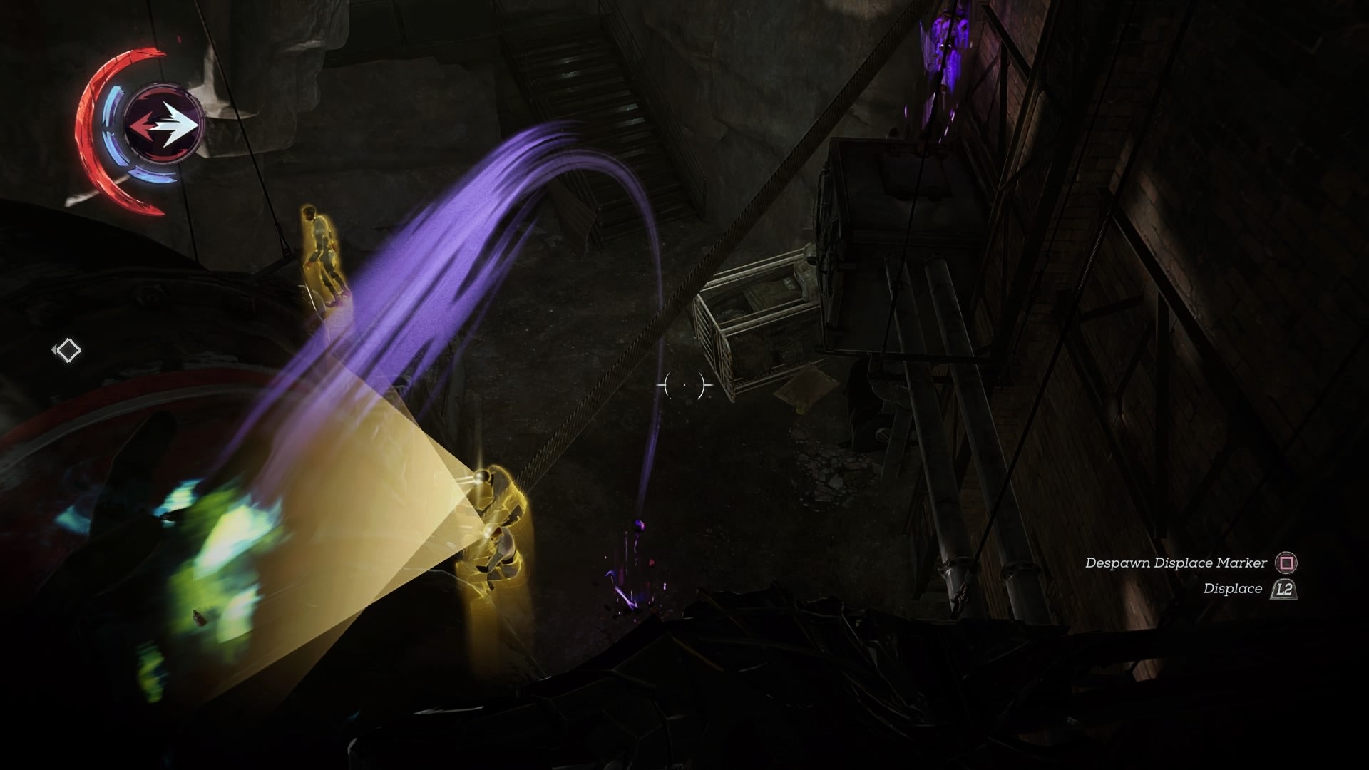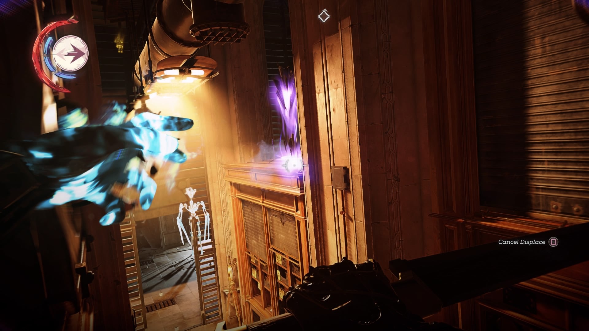 Getting into these spaces is as fun as uncovering what they harbour. Billie's moveset is another reworking of Corvo's from the original game, one that puts the emphasis a little more on stealth and planning than pyrotechnics. Her version of Corvo's legendary Blink dash, Displace, drops a destination marker rather than just teleporting you instantly. This slows down traversal a notch, but allows you to prepare an escape route before making your move on a position; in a brilliantly macabre touch, it also deposits a pile of purple fleshy shards in your wake, suggesting that you are, in fact, eviscerating yourself every time you Displace. Billie's recon ability is Foresight, the Dishonored equivalent of a Tom Clancy UAV, which freezes time and lets you fly around the level within a certain range, mark people or objects on the HUD, travel through vents and plant a Displace marker somewhere you can't otherwise reach.