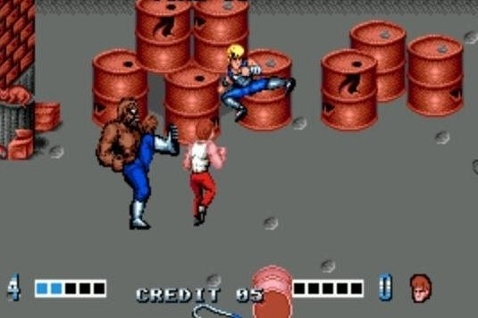 Although Double Dragon is infamous for slowing to a crawl with as little as four on-screen sprites, the combat remains well-directed with an equitable depth of strategy. You can shrug off enemies that bind you in a headlock, and utilise knives, barrels, chains and baseball bats as effective tools for crowd control. You can't go toe-to-toe with muscle-bound giant Abobo, as he'll end up boxing you to an early grave, and certain enemies won't yield to the old edge-forward-with-kicks-to-initiate-follow-up-grab routine. The elbow is the linchpin of all techniques, a glue that binds one attack to another and can save you in a bind. Technically invincible, it can take out all major enemies, including bosses, albeit in a deliberate and repetitive fashion.