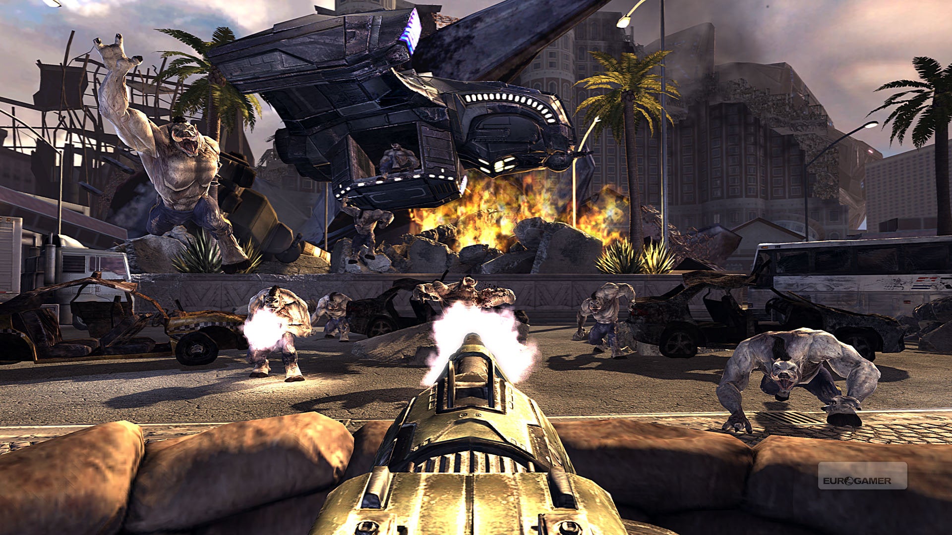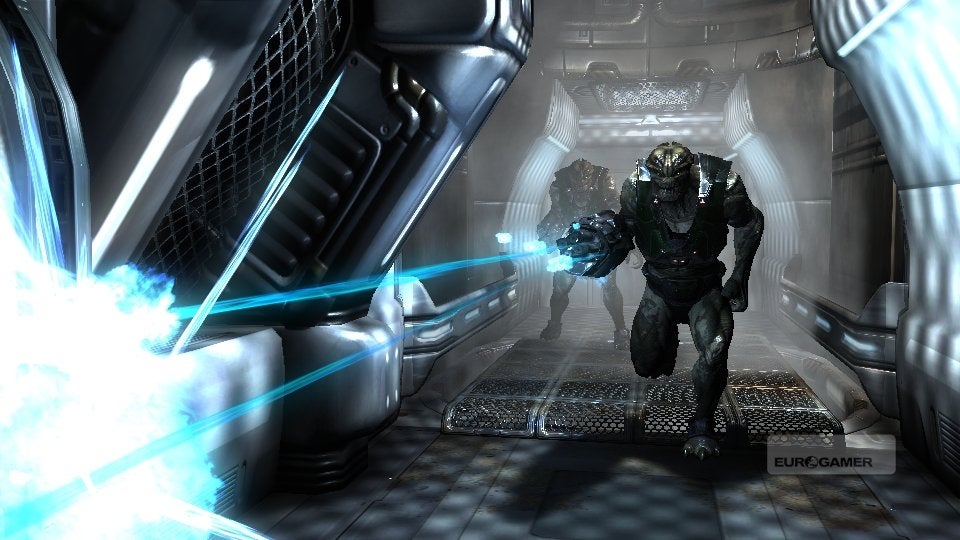 [Please note that we reviewed the game on Xbox 360, but Digital Foundry's Richard Leadbetter informs us that the PC version plays much better. "It's a complete mess on 360 - sub-HD resolutions, hugely obtrusive screen-tear, terrible aliasing, low frame rate," he says. "All of these things can be remedied by playing the game on PC. It doesn't transform it into a good game, but it makes it much easier on the eye and certainly smoother, far more responsive and thus more enjoyable to play." Look out for Rich's full Duke Nukem Forever Face-Off very soon. -Ed.]