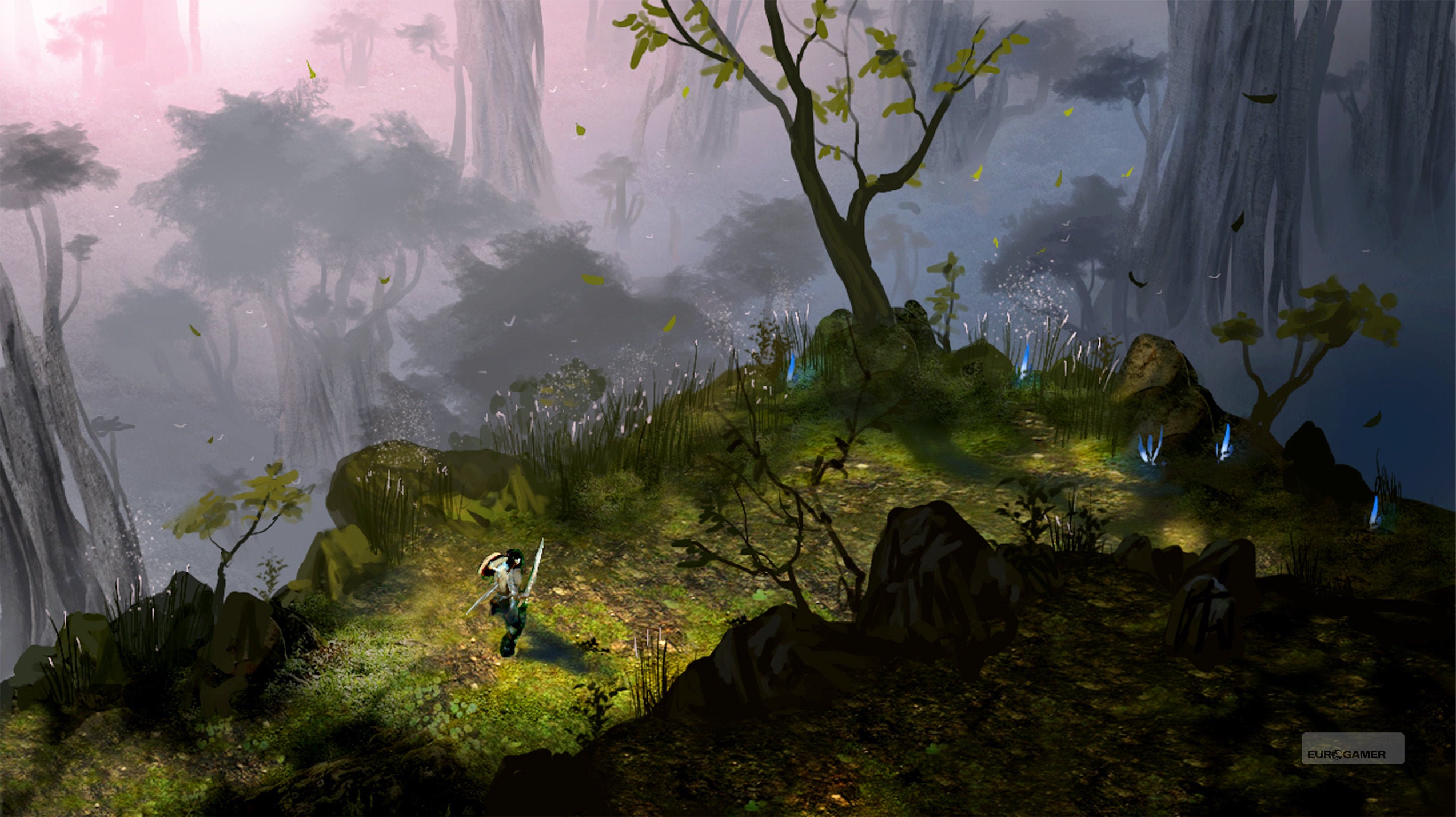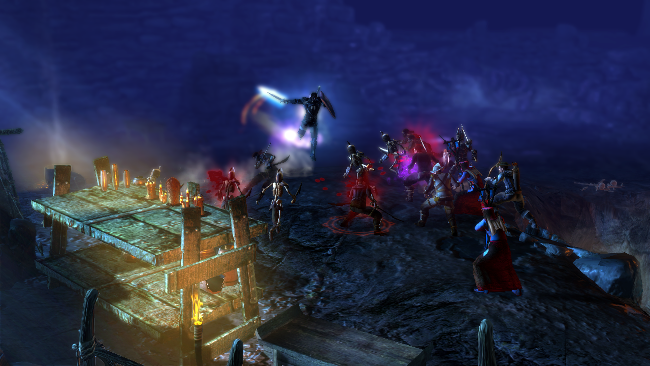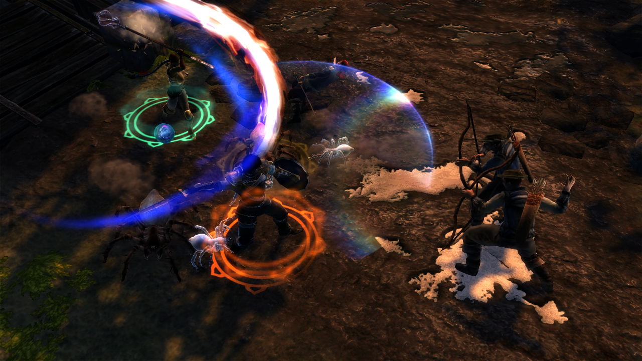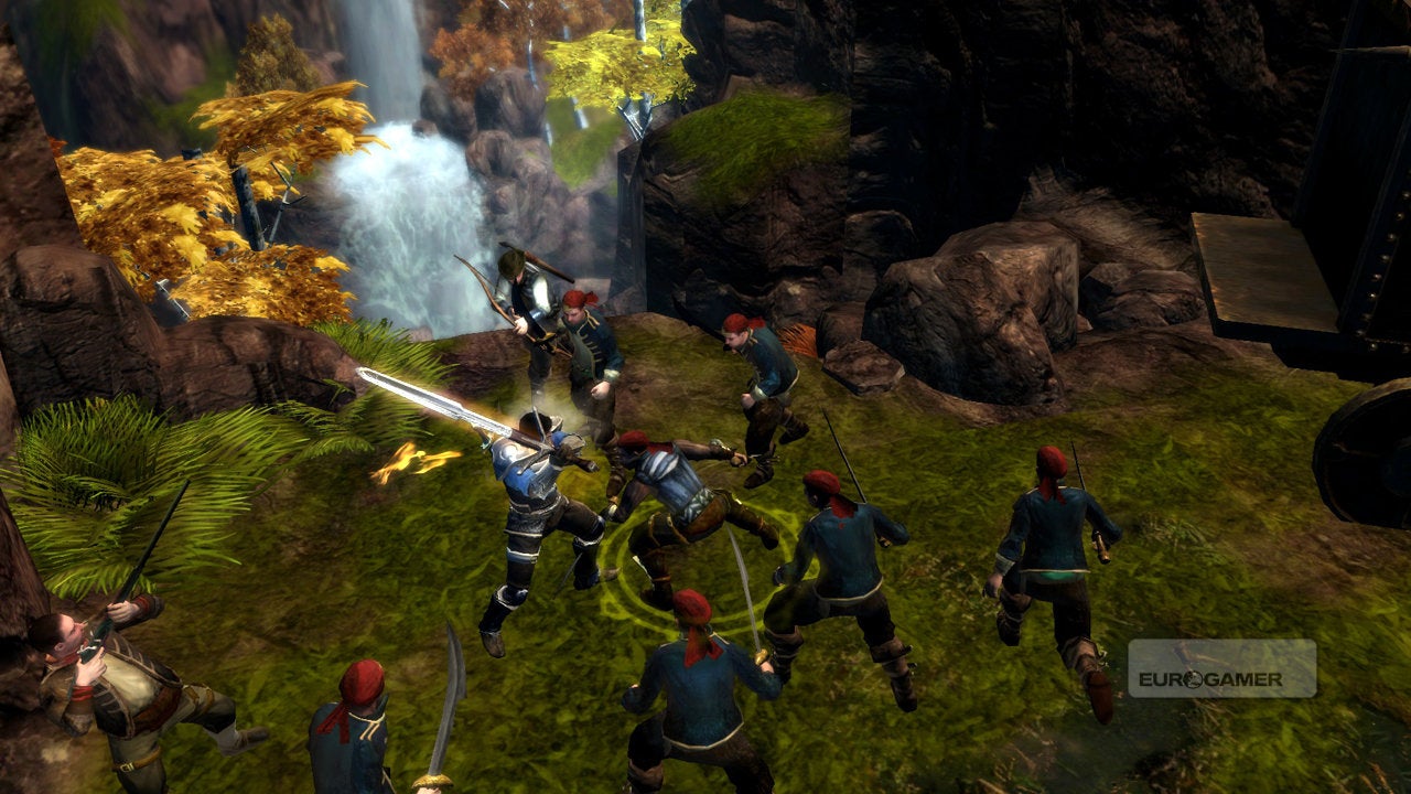 Who knows, eh? It's certainly looking like a decent game, though. For one thing, Dungeon Siege III's driven by the team's own technology this time, with the all-new Onyx engine doing a very reasonable job of crafting shadowy caves with water trickling down the walls and sun-dappled forests where fireflies litter the afternoon air. Sword swings send out glitzy little flashes of light, crows erupt from trees when you pass, and while character models may not be over-burdened with charisma, the animation has a nice flourish and weight to it during combat, and the game manages to shove a decent number of enemies and particle effects on the screen at once without falling over when things get hectic.