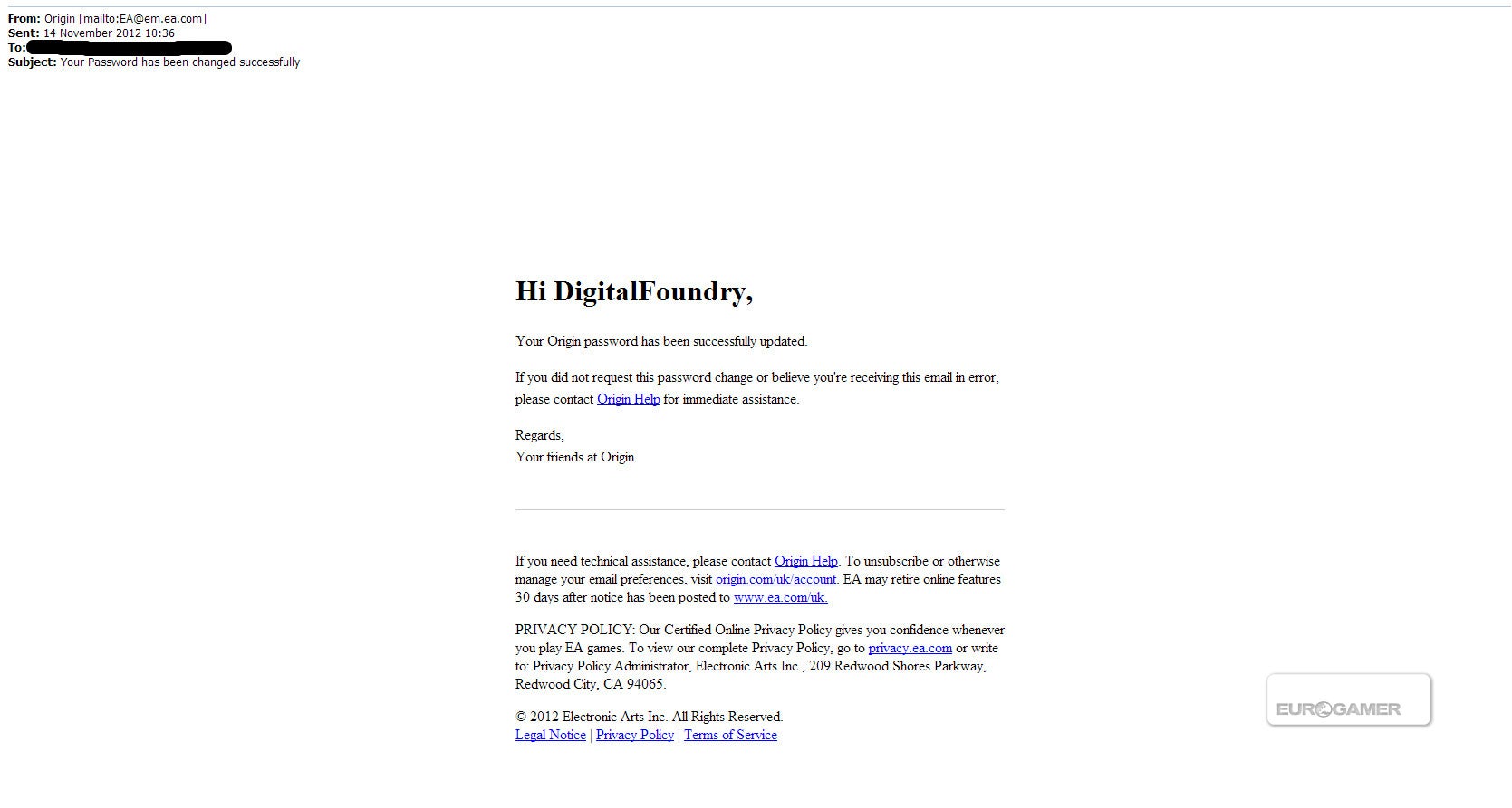 Origin: EA Origin accounts are being hijacked. Numerous people including Digital Foundry's Richard Leadbetter have been emailed by Origin with news that their account's password or email address or both have successfully been changed. Thing is, nobody asked or gave permission for them to be.
