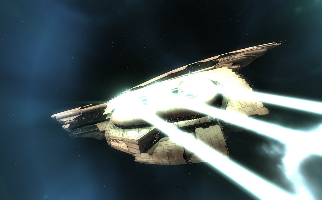 If I'm entirely honest, I'd have to say that EVE has long lost its meaning as a posh graphical experience. It's always looked good, sure, but I've been waging war in the nebulae too long to really notice that stuff any more. These days, it's about numbers: how much money? How many kills? And relationships: How many enemies? How many allies? The game becomes abstract - more about speed and ranges on your overview interface than about piloting a glittering warp-speeding death-tube - to a point at which, when you do notice the visuals, it's a bit of a jolt. Blimey, those ships really do look grand.