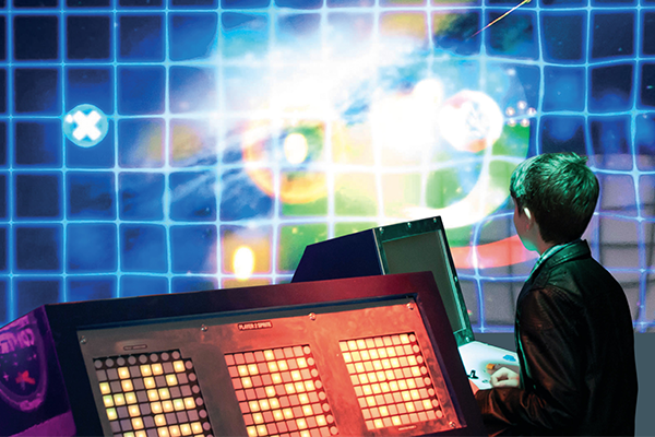 Another of the first exhibits is Mission Control and it's a doozy, taking over an entire room with giant ominous computer consoles that create a scene like something from a 60s sci-fi movie. The game itself is only for two players, but those spectacular control panels allow ten other players to tinker with the game on the fly. "We wanted to make a game that could be edited while being played in order to explain the component parts of a game, from code to audio to graphics," says Smith. "This gives people from the start the experience of being a game creator, we're not interested in creating new consumers, we want to create new creators."