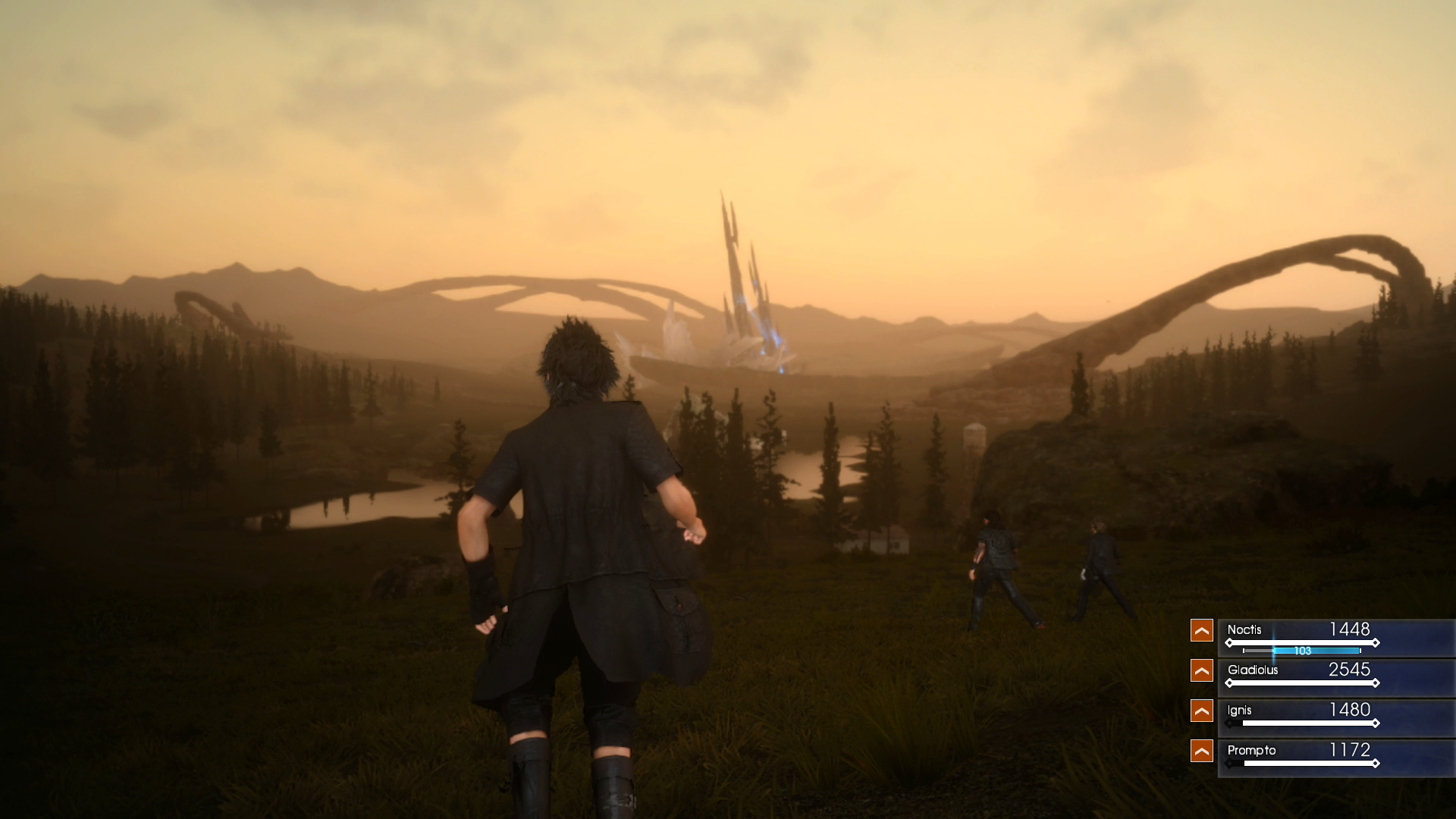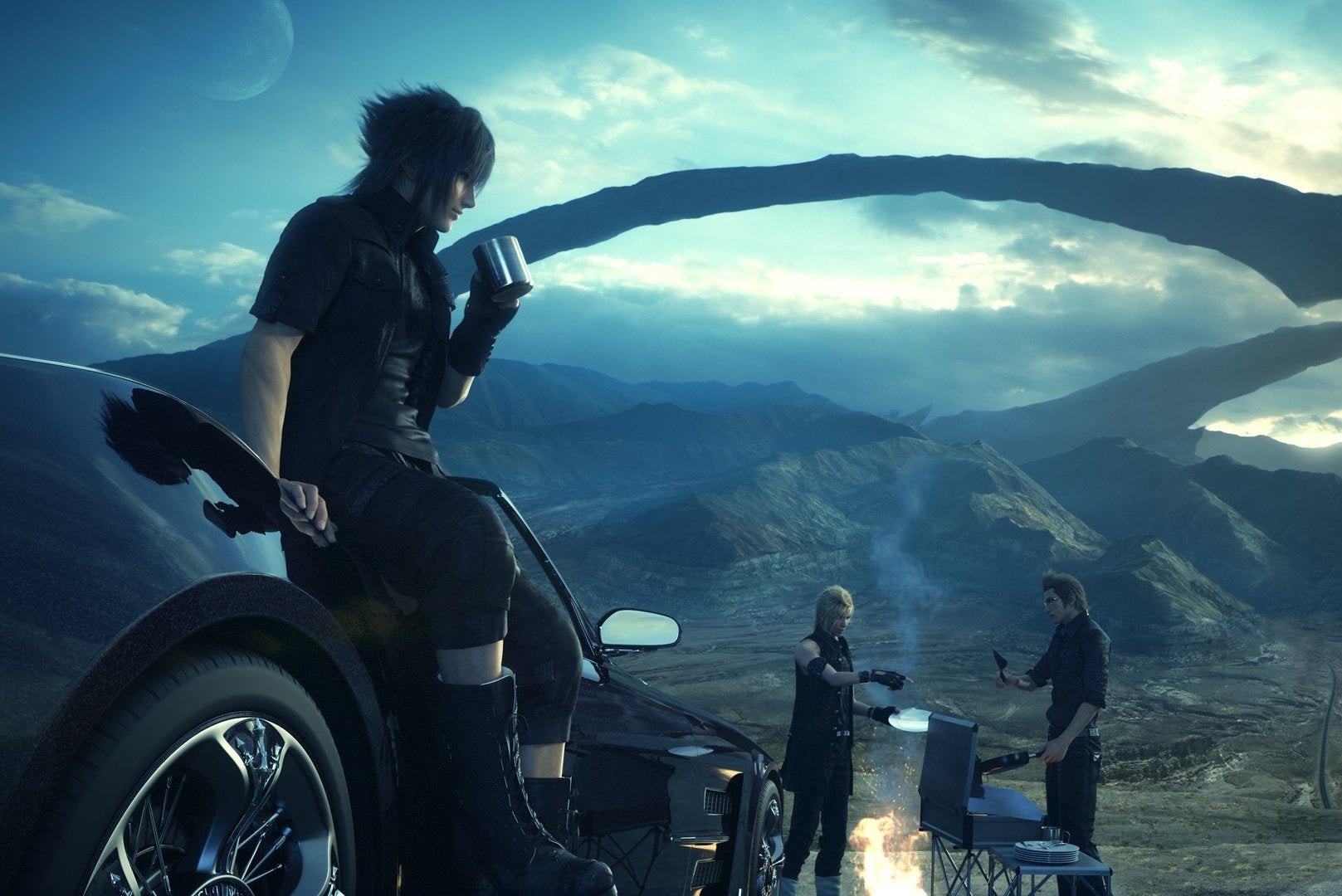 It feels like a very long while since a Final Fantasy universe has felt like one I'd want to spend time in. I'm still not entirely convinced by the characters or that their chatter won't begin to grate after a few hours, but the juxtaposition of traditional Final Fantasy tropes and aesthetics with more modernised, realistic elements like the party's car and costumes didn't trouble me nearly as much as I thought it would. Where a few of the past series entries felt like you were being harried down a long corridor, funnelled from one fight to another, Final Fantasy 15 seems to appreciate the quieter moments as much as the whirl of battle or the excitement of exploring: cooking, wandering, telling stories, standing still and looking.