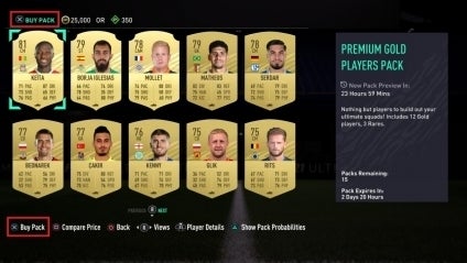 These virtual card packs have a chance to include powerful players, adding an element of pay-to-win to Ultimate Team. While FIFA 21, the latest version of the game, does highlight pack odds, players are never sure which cards they will get.