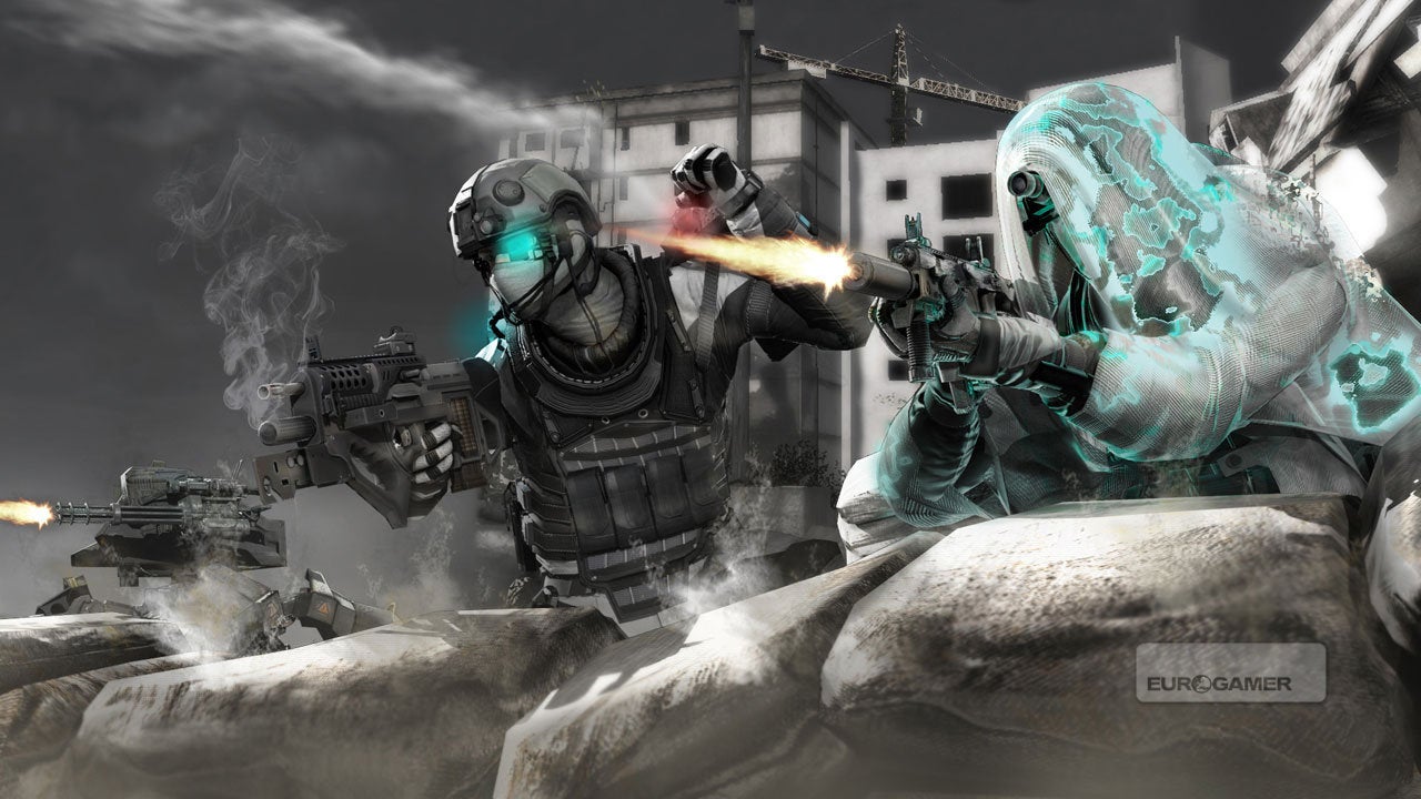 He'll be backing up the main fighting class, the Commando. This frontline soldier carries around a moldular rifle, whose jigsaw structure can be arranged to transform it between rifle, shotgun, grenade launcher and door-breaching modes. And more still, no doubt, as Ubisoft's Persistent Elite Creation unlock/experience/ranking system introduced in Splinter Cell: Conviction returns here. The fact it isn't called Tom Clancy's Persistent Elite Creation system suggests it's due to appear in many more games to come.