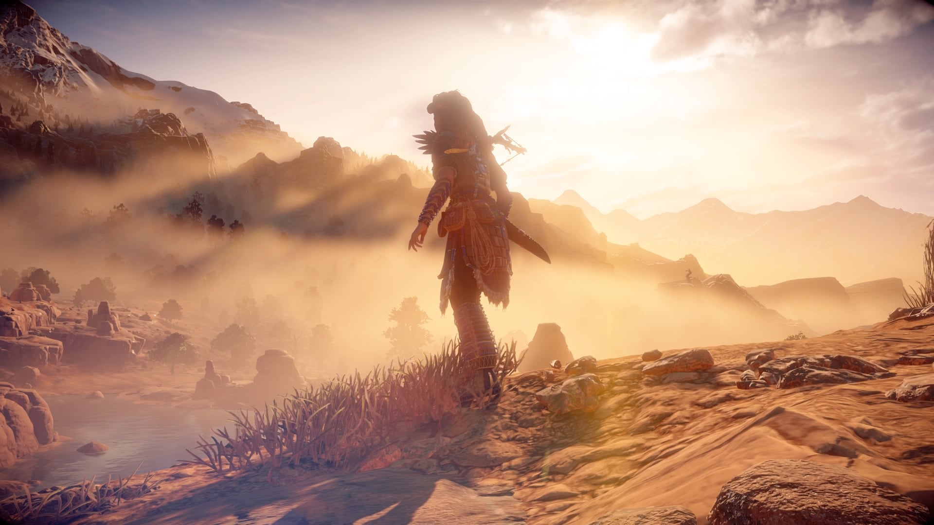 Dawn chorus.You'd be forgiven for going into this one expecting something a little different. For developer Guerrilla Games, at least, Horizon Zero Dawn sees a remarkable change in both pace and tone, a well-earned break from over ten years of stoic service on the gritty battlefields of Killzone and a step away from the crushed concrete and exposed steel mesh of Helghan towards something brighter, breezier, more open. Horizon Zero Dawn is a sumptuous, slow-burning adventure that stretches its 30 hour tale across a vast and beautiful map that's light years away from the killing fields of Guerrilla's first-person shooter series. It's an open world game of admirable scope and craft.