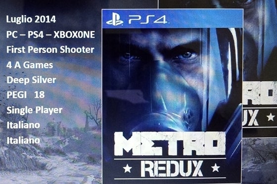 The images, below, show off a game called Metro Redux, and is listed for the PC, PS4 and Xbox One. It's supposedly out in July and is developed by the series creator 4A Games.