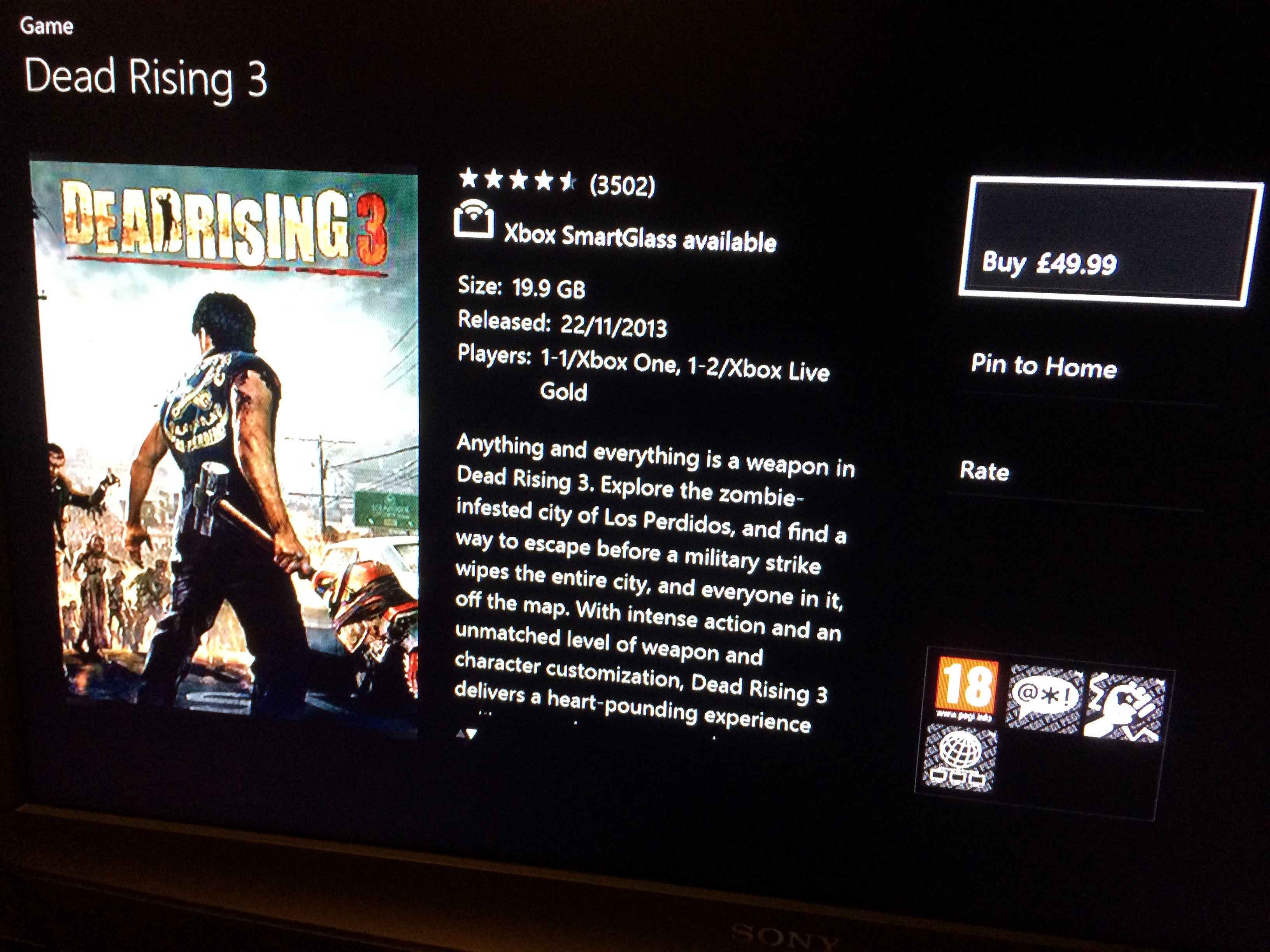 When the Xbox One launched on 22nd November the digital versions of Dead Rising 3, Ryse: Son of Rome and Forza Motorsport 5 were available for £44.99. Now, they're £49.99.