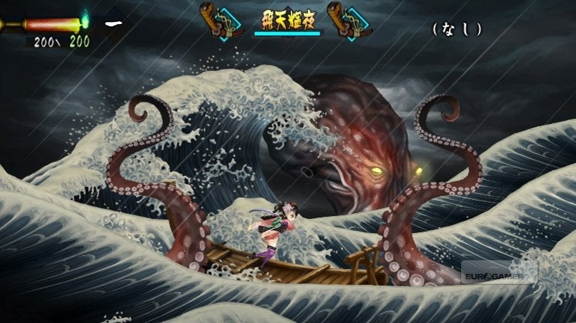 The combat, however - enjoyable and visually spectacular though it is - feels imprecise. The game barely ever challenges you on the normal difficulty setting, instead letting you slice enemies up unperturbed, and as a result it gets repetitive after that first breathless, impressive half-hour or so. The next difficulty up is more technical, and the next after that more technical still - it unlocks upon completion, and limits your health to 1 hit point for the duration - but this isn't the hardcore 2D action game that its sprites and Japanese looks might suggest.