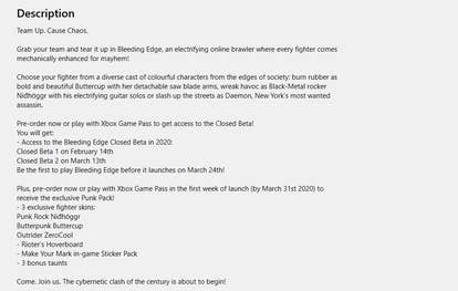 Bleeding Edge arrives on 24th March, and those who pre-order it on Xbox Game Pass will get access to a closed beta - the first starting on 14th February, and the second starting on 13th March.