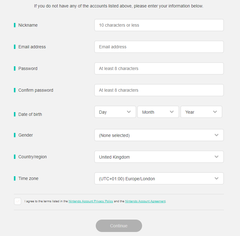Be sure to use a different email address than assigned to your usual Nintendo account, and most importantly choose the region you want to purchase games from, not the region you're currently in. (So if you want to use the Japanese eShop, choose Japan). Unlike on PlayStation, there's no need to put in a street address here - just the region will do.