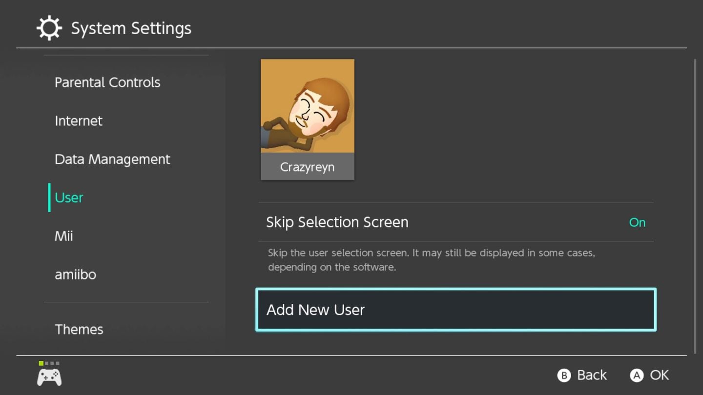 Fire up your Switch, then go System Settings, then User, and the Add New User option.