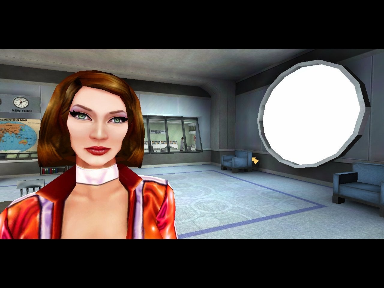 NOLF learned the lesson that Half-Life had to teach, that almost no other games took notice of. It knew to be quiet at the start. The opening sequences, introducing characters, opening up the plot, and teaching you/Archer a series of spy skills in the training rooms, are laid out in the offices of UNITY. It's a day at the office. You get trained, talk to people, visit the Toy Shop to receive your first batch of gadgets, and settle in. The details here are surprisingly lovely - down one corridor, through a glass wall, you can see a secretary catching a nap, cartoon Zs floating from her head. Bang on the glass and she'll wake up. Completely unnecessary, irrelevant to everything, but there anyway.