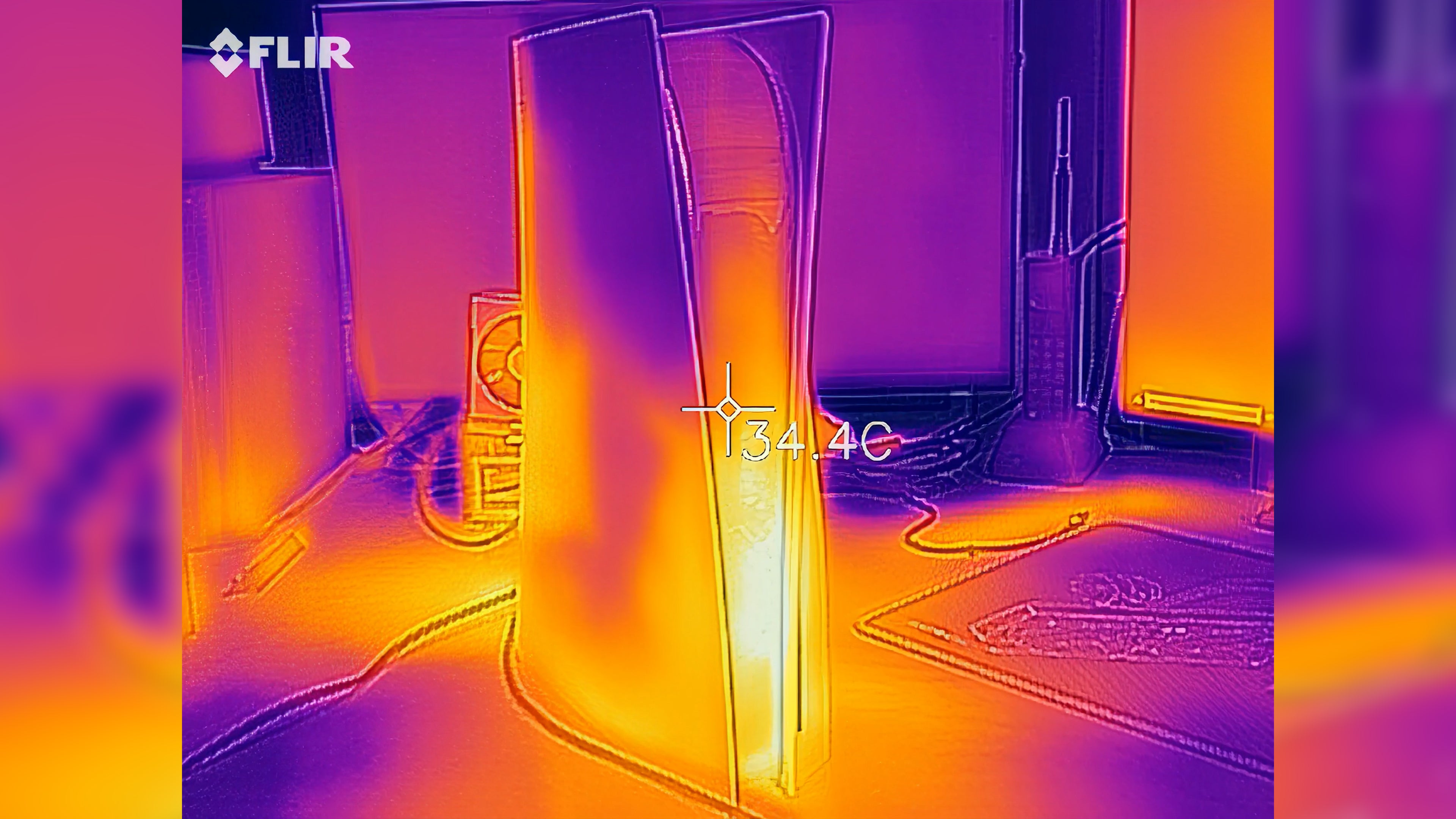 First of all, similar to Series X, I think that noise is basically a non-issue with PlayStation 5. Close-up to the console, you can hear the slight whir of the fan, but in living room, office or bedroom conditions, this totally disappears into the ambient noise. Fan speeds (and thus noise) also seem remarkably consistent, and even ramping up power draw as much as I could with Marvel's Spider-Man: Miles Morales in photo mode - and then leaving the console alone for an hour - PlayStation 5 continued to be just as cool and quiet. The thermal photography of the system under load is literally illuminating.