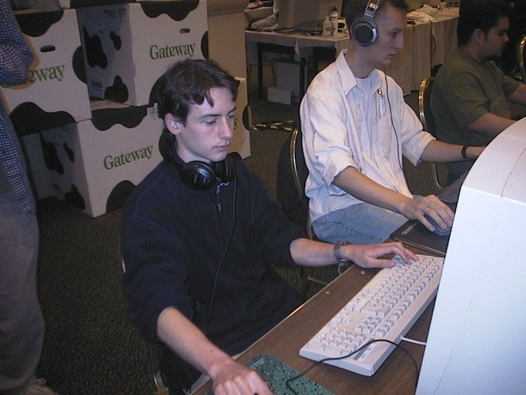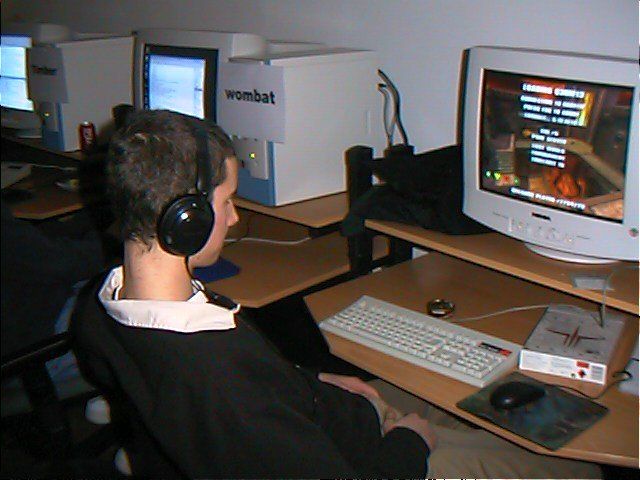 Most of the top players were on site in plenty of time, with Wombat, Shub, Insane, Fatality, Blokey, and several of the Clan 9 guys practicing or checking out the opposition as I did my pre-tourney walk-abouts. Not everybody was there though - I hadn't seen Makaveli or Lakerman yet, and a few of the British contenders had apparently cancelled at the last minute, including Acquiesce.