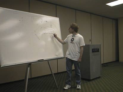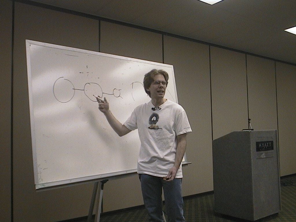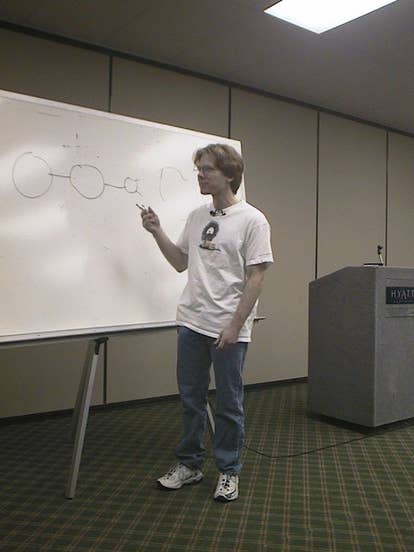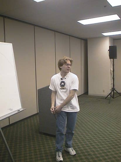 The first major workshop session of the Razer-CPL tournament saw John Carmack, co-founder and programming guru of id Software talking about .. um .. well, we're not quite sure actually.
