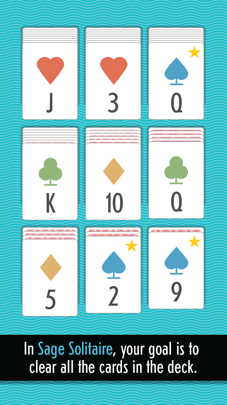 For a number of years Gage has been toying with the idea of how to remake Solitaire specifically for mobile phones, where most variants do not fit elegantly on the screen. Then, earlier this year, while he was taking a shower, a design presented itself. "I had a full working rule-set before my hair was dry," he says. He called the game Sage Solitaire.