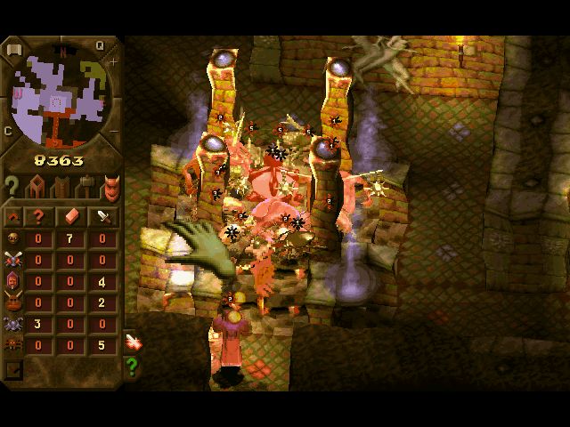 Admittedly, the game doesn't convey the strategy behind combat particularly effectively. Aesthetically Dungeon Keeper has not aged well - its textures are a muddy mess of browns, blacks and reds, such that it becomes difficult to interpret what's going on when more than a few characters are on-screen. It also runs terribly, giving the same kind of framerate during larger battles that you'd expect from the latest Crytek game.