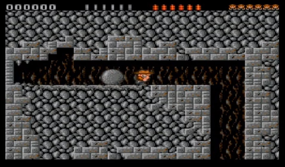 The beautifully crafted box artwork may have echoed Drew Struzan's iconic Indy posters, but the in-game sprites followed a very different artistic tradition: that of the classic British comic strip. All the characters are squat, chunky and have their headgear pulled down so far over their heads that all you can see is a toothy grin - Rick himself looks like Bully Beef from The Dandy gleefully cosplaying as Doctor Jones. From the fanfare menu music to the tongue-in-cheek newsreel that introduced each level, it was a game brimming with fun, character and confidence, and made the world of Rick Dangerous seem like a pleasingly fully-realised place.
