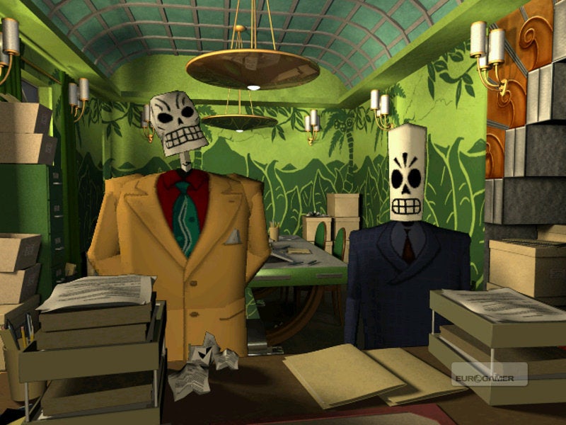 The Land of the Dead is bursting with detail. A Mad Men-esque skyscraper has a rope made of neckties forming an escape route out of your superiors' offices, and a beatnik (or "dead beats" as Manny calls them) club is an azure palace called "The Blue Casket", where the entrance is shaped like a coffin. Look beyond the blocky, pixellated character models and low-res cut-scenes and the pre-rendered 2D backdrops hold up remarkably well nearly a decade and a half on.