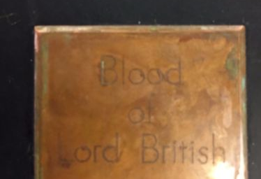 "The Lord British Blood Reliquary is a beautiful and unique piece of art made of bakelite, copper, nails, glass, and mirrored glass that can be hung on your wall," the eBay listing reads.
