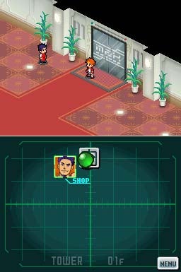 Speaking of the skyscraper, it's comfortably the least inspired and inspiring location any videogame's ever been set in. Composed of 21 floors, you must painstakingly make your way up, level by level, beating every competitor on every floor before progressing to the next one. You don't even get direct control of your character (or rather the character who represents the character you picked at the start of the game). Rather, the top screen shows him walking around, while the bottom screen, the one that you control, simply contains three or four dots (representing people), which you flick between and activate.
