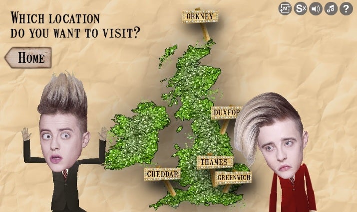 But now you can join them on a historical journey in Jedward's Big Adventure Game. Choose to play as John or Edward - it's like Sophie's Choice, if Sophie really hated both her children. Pleasingly, the quiff of the one you don't pick collapses into a flaccid mound.