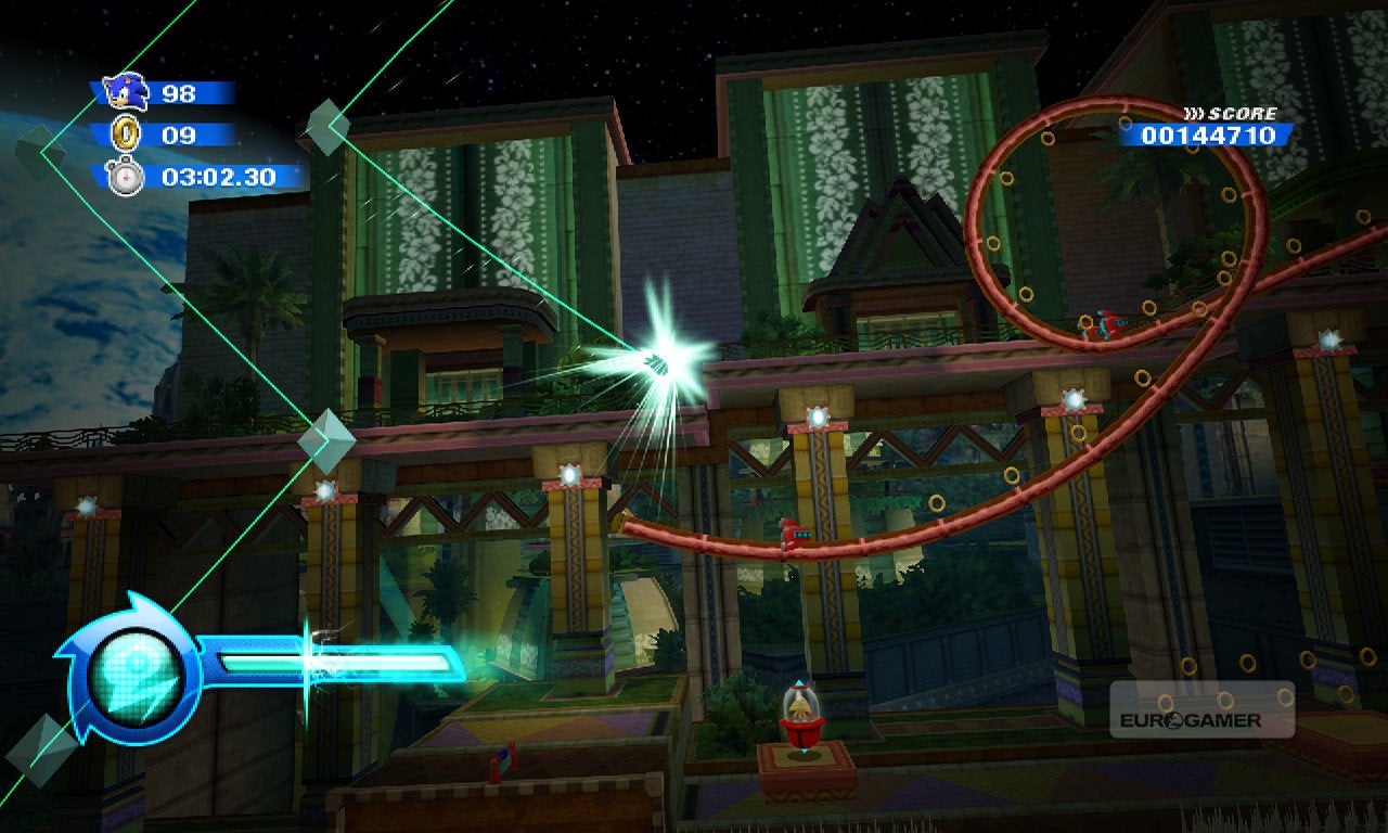 It's far from obsolete, though. Sonic Colours is a reminder that visual impact needn't be about bump-mapping and high dynamic-range lighting. One level, aptly named Starlight Carnival, is a textbook example of how to get the most out of a less well-endowed machine.