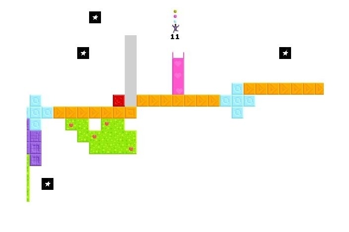 The game takes place on blocks floating in a small rectangle of white space, and you play the pilgrim: a stick figure who can jump, tunnel and plant starseeds. A simple introductory screen explains all of this, though you'll need to check the 'readme' file for one important instruction that should really be in the game - dig pink blocks to get more starseeds.