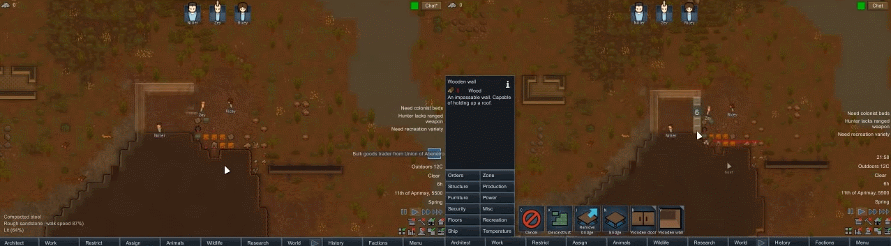 Something worth noting is all players are able to control all aspects of the colony, which can result in some particularly cosy co-operative work. This separates it from other multiplayer RimWorld mods, such as Phi Mod, which allows players to interact between colonies while retaining control over their own settlements. Personally I quite enjoy the fully co-operative play - but if you have a friend with a tendency for trolling, watch out.