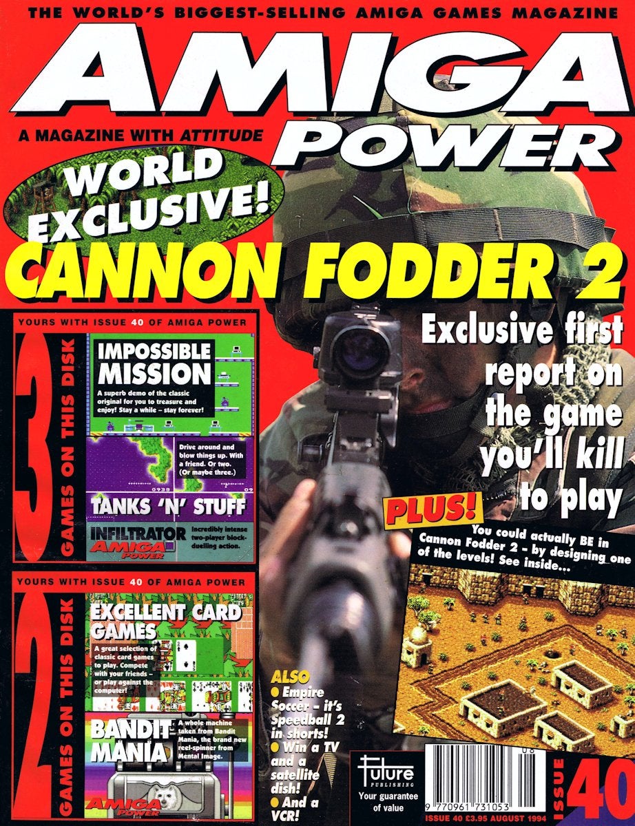 The Amiga was popular enough to fuel magazines devoted to the machine. Here's an issue of Amiga Power from 1994, with the wonderful Cannon Fodder 2 starring on the front cover.