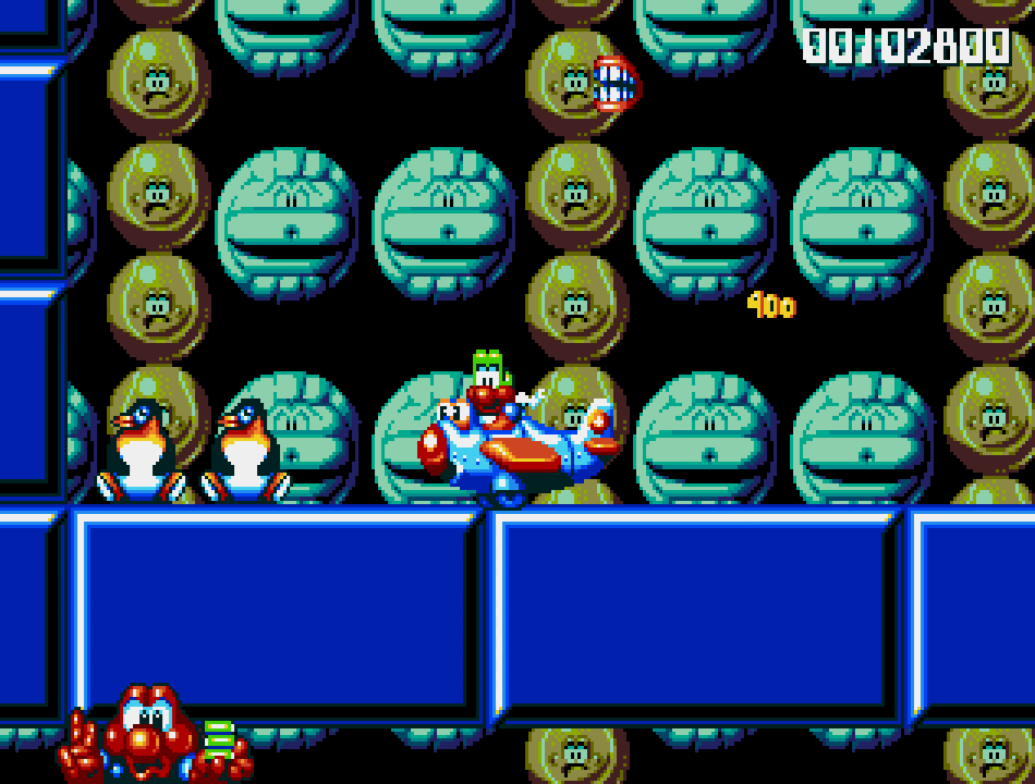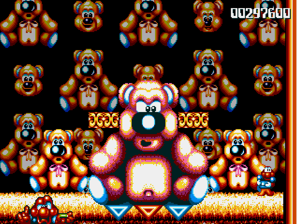 Although he was concerned with making the Amiga edition the definitive version of the game, Sorrell was well aware of just how important the Mega Drive port would be. As was the case with the original game, Electronic Arts had stepped forward to publish on the Sega Mega Drive, and this version was therefore developed in parallel with the Amiga offering. "Our relationship with EA was certainly a little strange," Sorrell recalls. "James Pond was the first Mega Drive game to be developed in Europe and was produced in a crazy rush on a one-of-a-kind Mac-based dev-kit that Steve had to personally fly back with from San Francisco. Robocod was more straightforward; still using that same dev-kit, we had a dedicated Mega Drive programmer called Simeon Pashley working on that version as well as assisting me with bosses and the game's intro. For this one we continued to deal directly with EA folk in California, sending them update builds each night very slowly via 28k modem."
