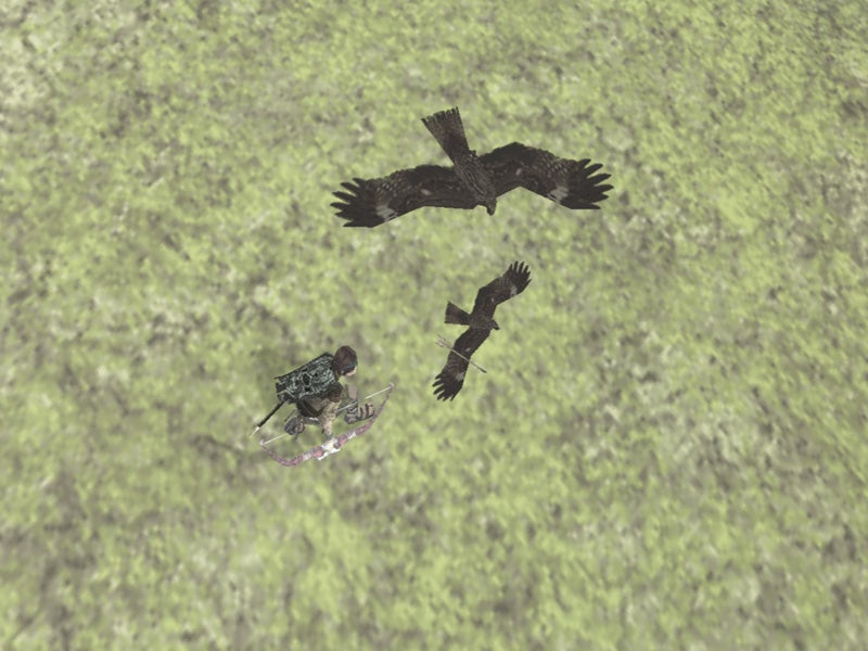 It was a different set of birds that brought Ozzymandias to his clifftop, however. While other players were Agro-jumping into unintended corners of the map, many with half-finished textures and unreliable collision planes, Ozzy was convinced that, if there was a Last Big Secret to be found, then it would be uncovered by more legitimate means. What's more, he'd found a promising lead. Down at the southernmost part of the Forbidden Lands were a flock of seagulls whose flightpath, just like that of the Lokis, brought them for a tantalising moment within range of Wander's grasp. There just one problem: the player had to jump off the cliff first.