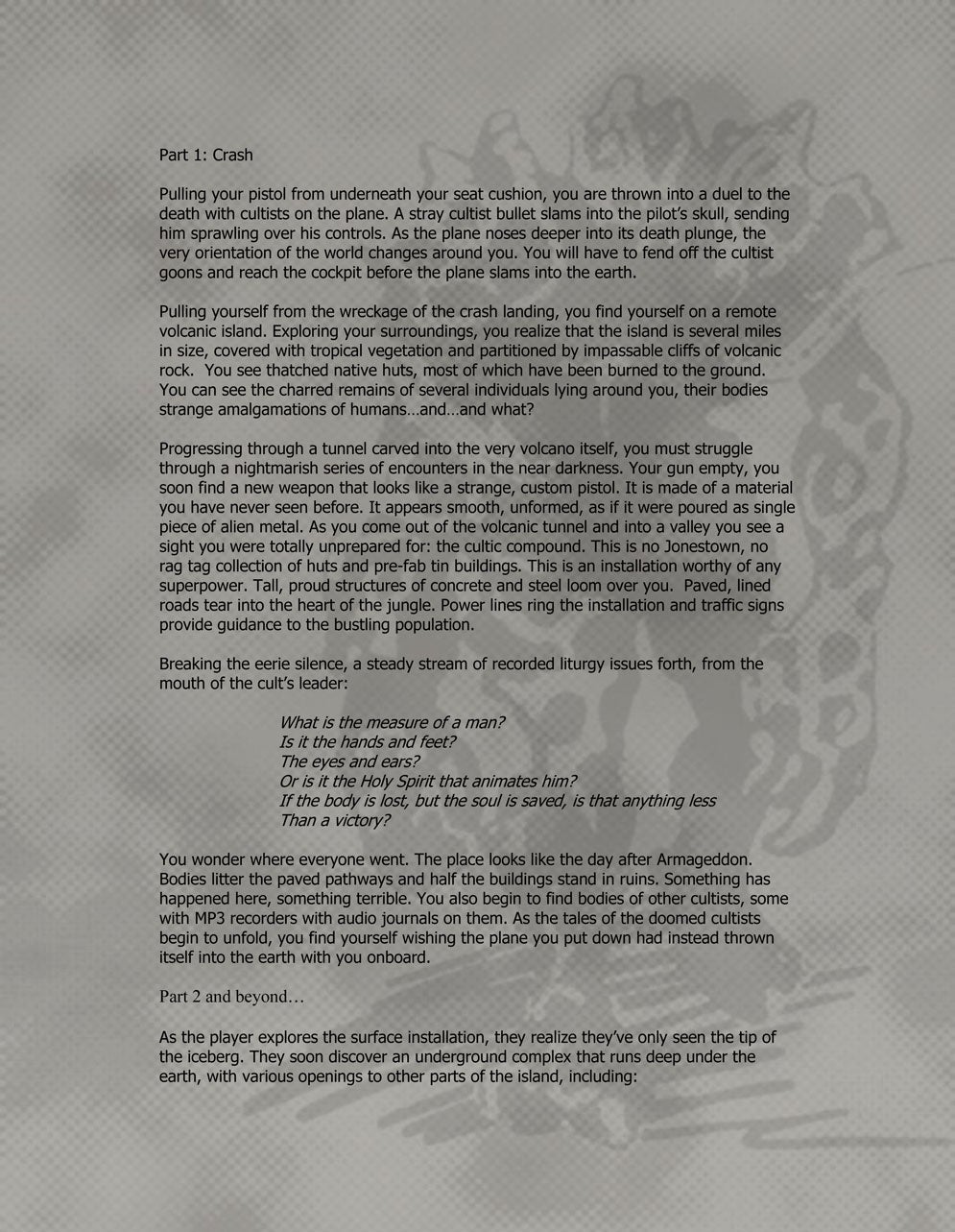 Around this time the story centred on a protagonist called Carlos Cuello, 'cult de-programmer' (Levine borrowed the name from one of Irrational's own programmers). While the team struggled to work out what game they wanted to make and how they wanted it to look, word that the studio was working on a game in the System Shock lineage got out.