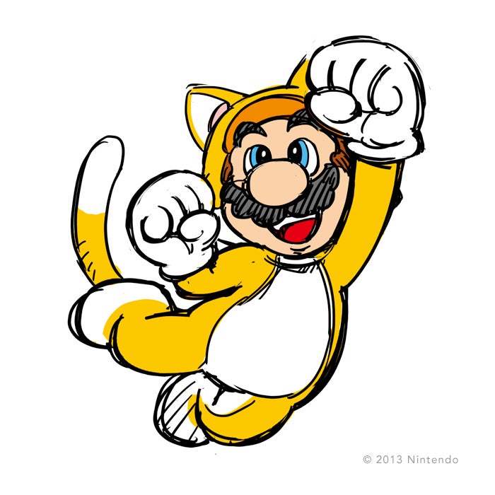 For example, when the conversation turns to cat Mario - a transformation that occurs in the game when the character dons this, the latest ability-enhancing costume to be added to the plumber's increasingly fetishist wardrobe - Miyamoto lets his hands dangle tightly together from his chest, mimicking the animal's paws. As the room falls silent, he licks his lips, pretends to clean his cheek and then, when the act is finished and he notes our giggling approval, his features bloom into a broad smile.