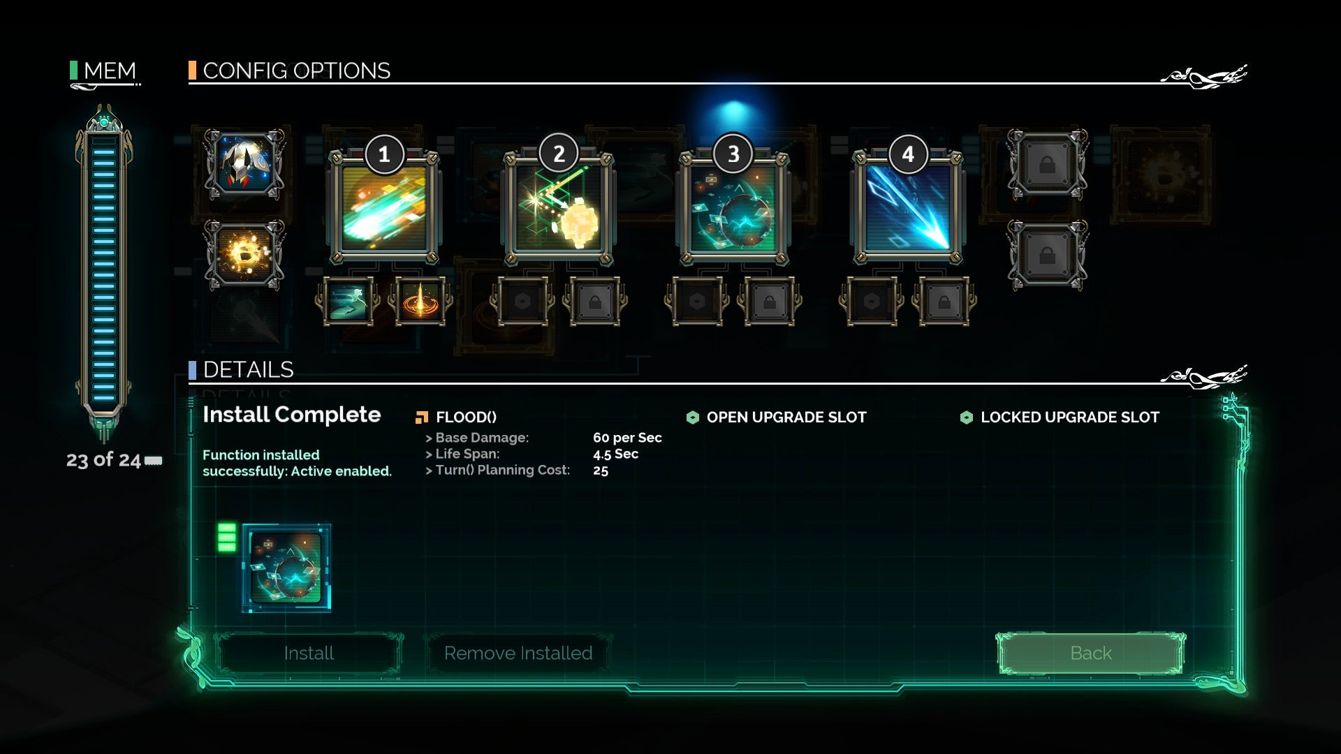 Transistor's second trick lies with the framework around the combat system, an RPG build creator which makes just picking your load-out of skills - or to use Transistor's terminology, functions - as much fun as using them. Functions can either be placed into active slots, in which case they'll work as one of your four main attacks, or into upgrade sub-slots to augment specific active functions. In the language of Diablo 3, each skill is also a potential rune for all other skills. Additionally, you can even choose to place functions in passive slots, where they will confer traits like boosted health.