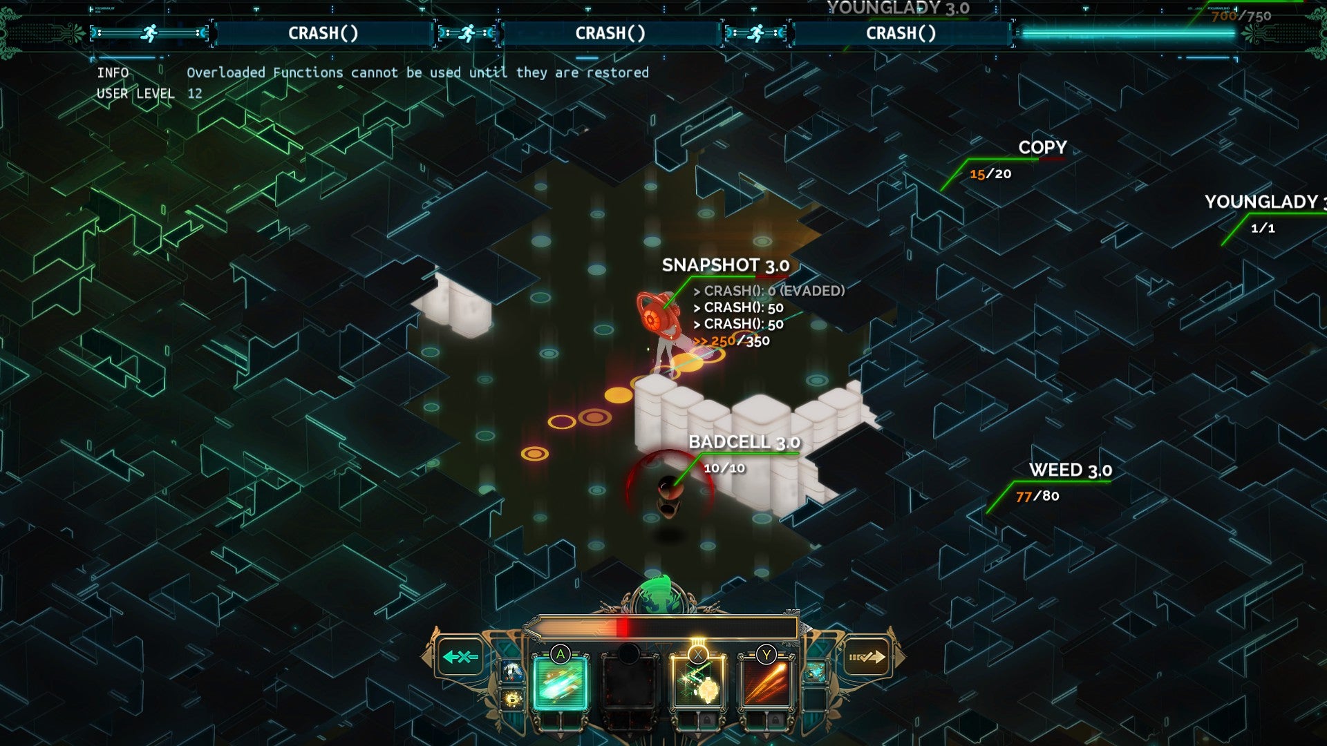 Together, the whole thing clicks, in fact, especially when the cooldown that follows a turn moves the game away from a real-time flow and dials up the attendant panic. I love games that will make you meaningfully bear the cost of a mistake, and I love games that let you tinker until you've created a build that's really weird, but that still works in a world designed to encourage weird thinking.