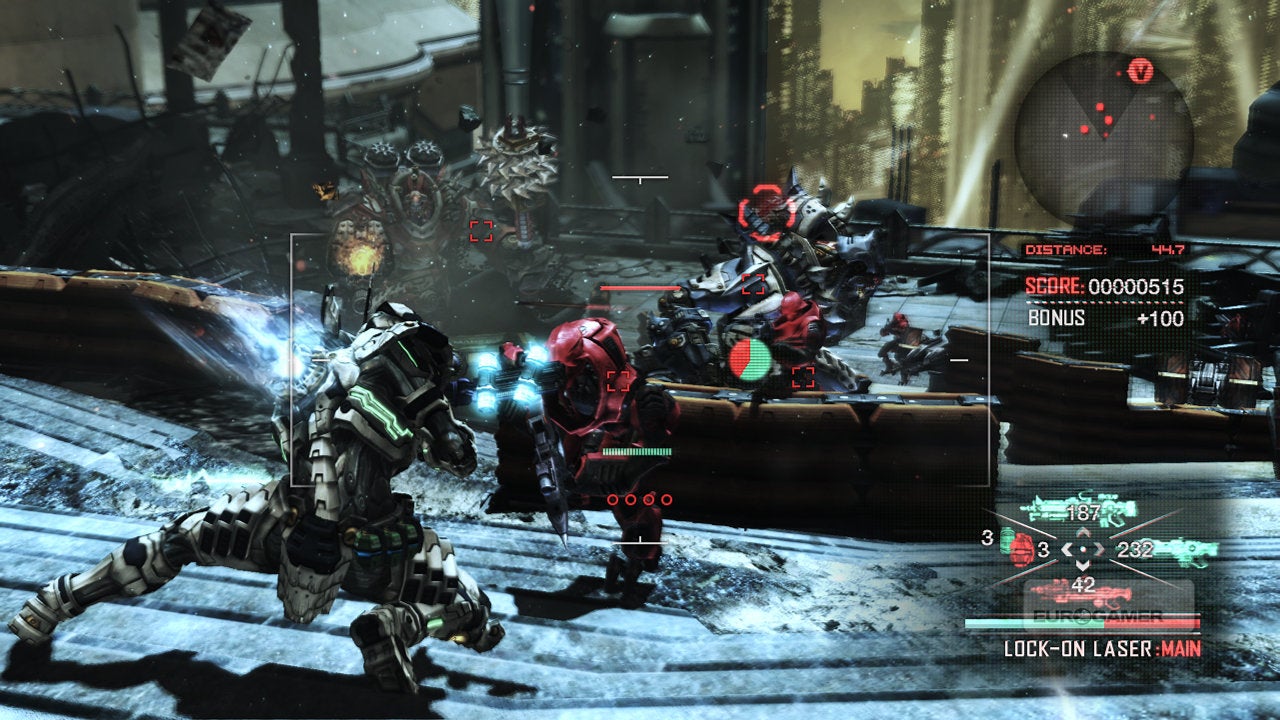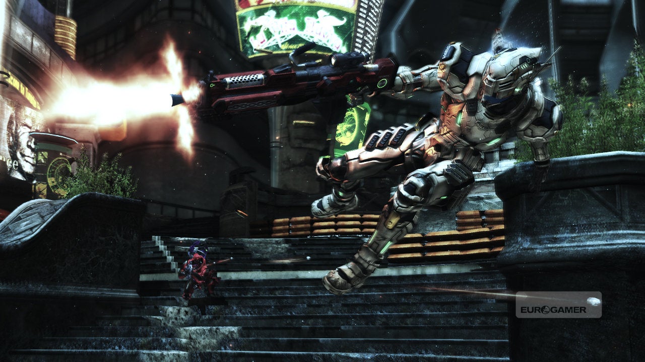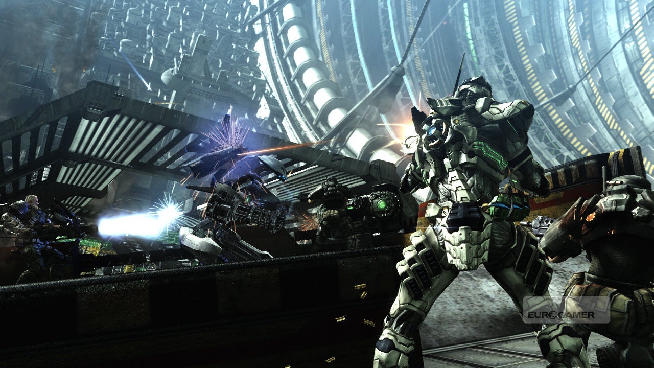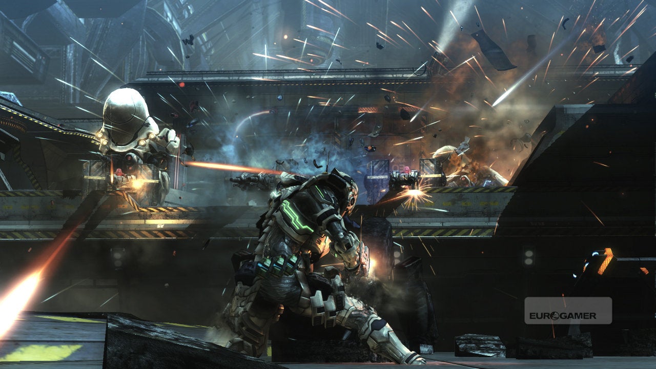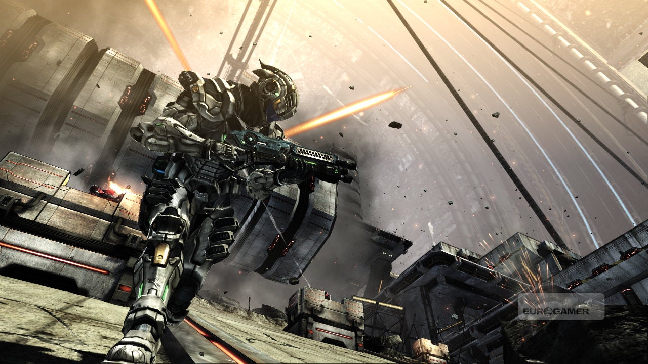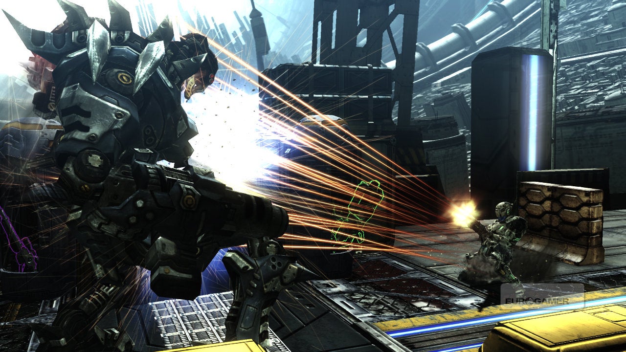 Vanquish is, however, a game primarily fuelled by spectacle. The story is sub-Kojima nonsense. Reduce the boss fights to their most basic components and the designs are decades old: you find the weak spot, exploit to temporarily reveal the tender core, and repeat the process.