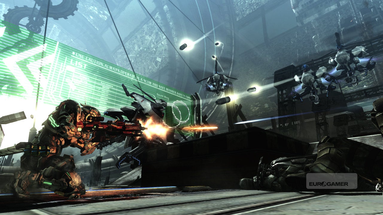 These are game-changing inventions; that they come from a Japanese developer that has never worked in the genre before is startling. Enemy behaviour, too, astounds in its fantastical believability. Shoot the legs from one robot and it will crawl at you. Not in a laboured, Hollywood death scene way, but with desperate lunging thrusts, its drill bit claws extended as it tries to skewer you with frantic, shocking jabs.