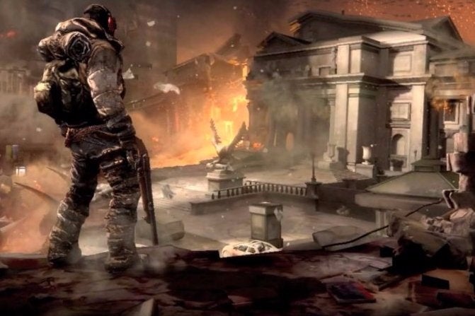 The video shows a number of soldiers in a grim, war-torn environment. It reminds us of Guerrilla Games' Killzone series, with a splash of id Software's Rage and a dash, perhaps, of Call of Duty. Not very Doom, though.