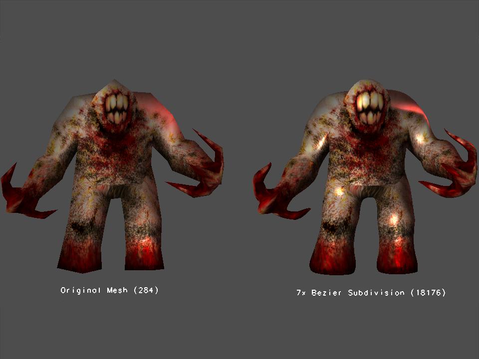 N-Patches provide a seemingly magical solution to the problem - a game reads in a low polygon model, but what appears on your screen is a fully fleshed out organic looking character, with smooth edges and as many polygons as your hardware can handle. How?