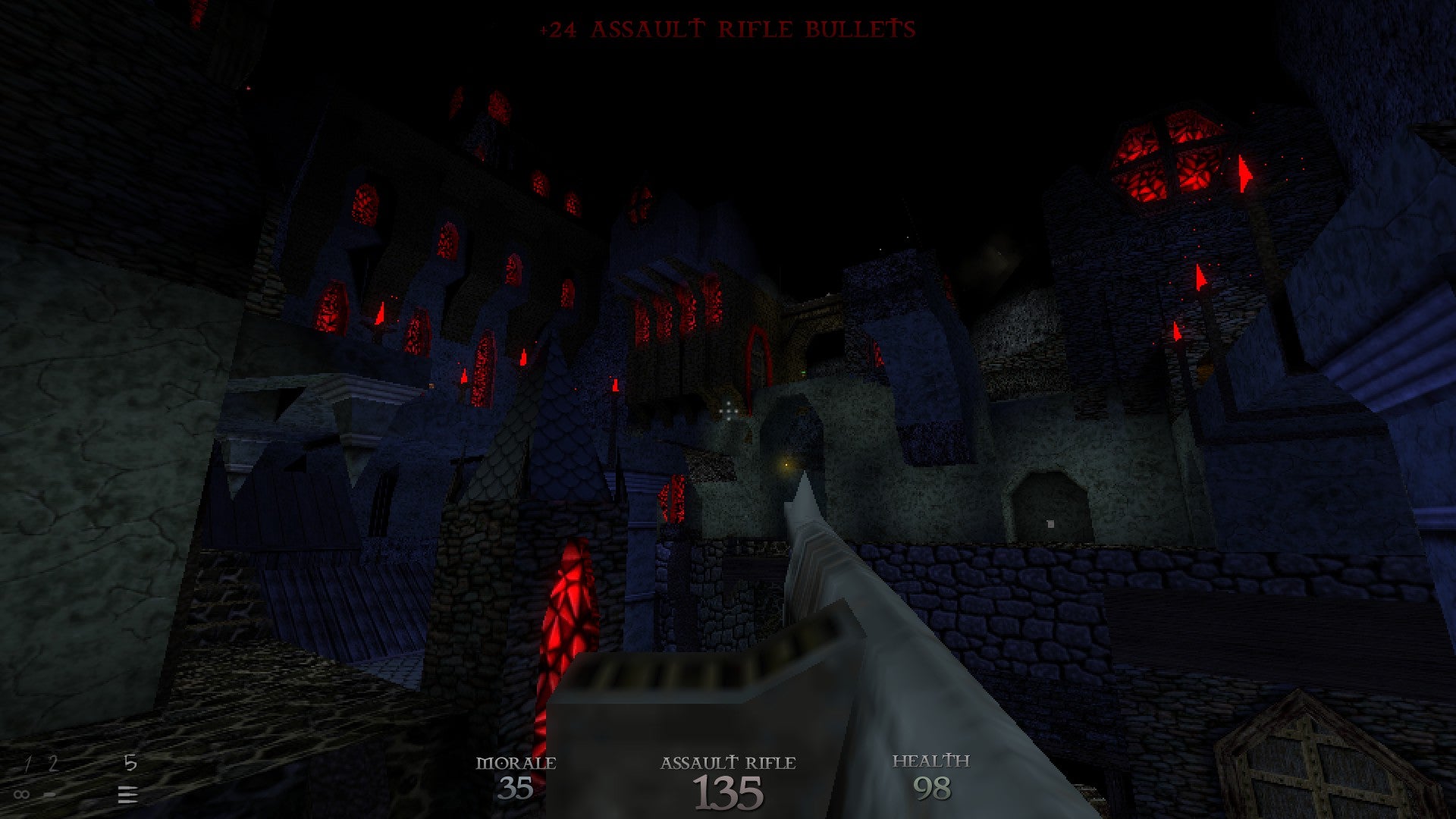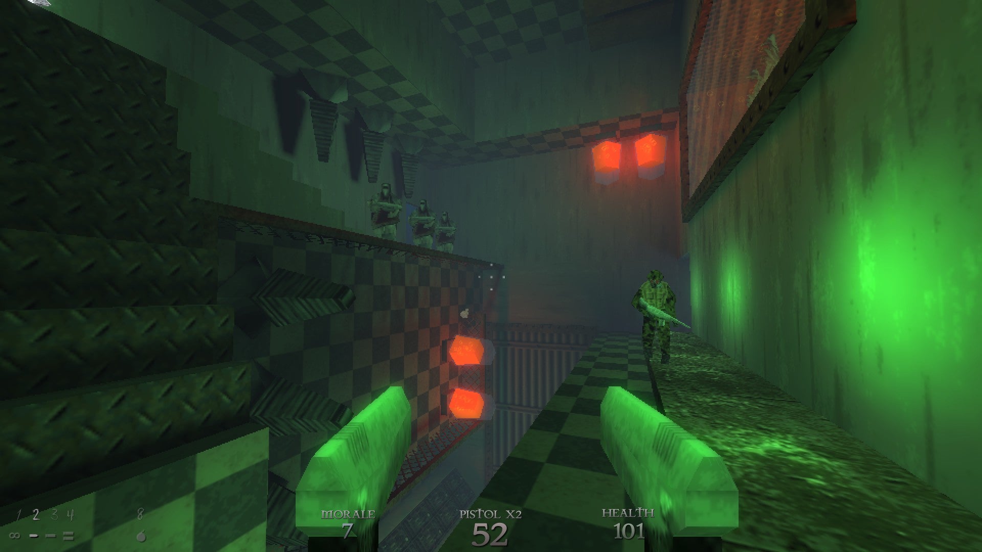 It's easy to dismiss this as simply an "old-skool" approach to level design, where the emphasis was on creating a space that was interesting to navigate rather than convincing to look at. But it's important to remember that those games were themselves pushing the cutting edge of 3D graphics technology. Dusk, on the other hand, makes a deliberate effort to advance a style that those games created out of necessity.