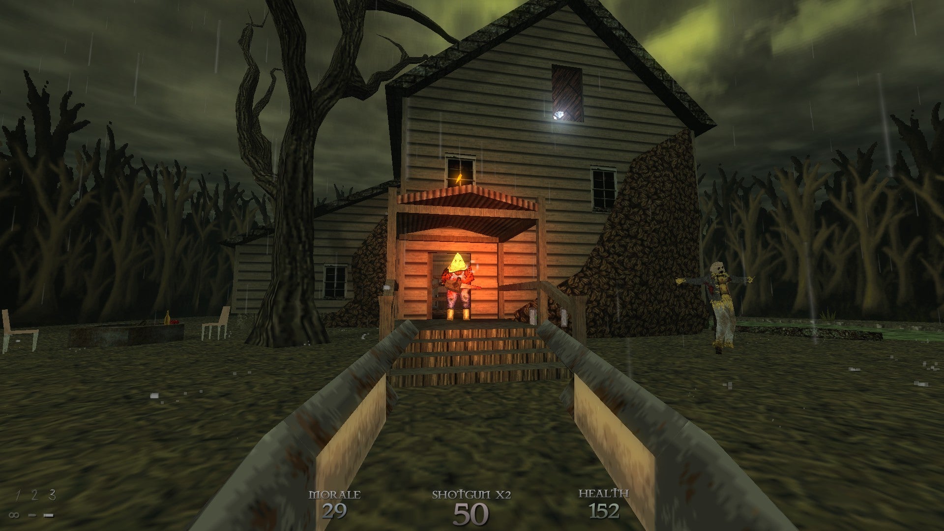 In itself, this is nothing special. But Dusk then takes these basic building blocks and runs wild with them. The first of Dusk's three episodes is designed to set the tone, which is inspired by backwoods American horror movies like The Hills Have Eyes and the Texas Chainsaw Massacre. It's a spooky, atmospheric nostalgia trip that plays all the classic hits, from "Secret Door That Looks Like a Wall." to "Spinning Key That Triggers Enemy Spawn".