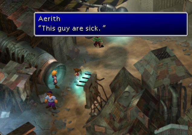 Burke used his admittedly poor programming skills to prod the game, at first simply to polish up some of its worst dialogue, such as the infamous "this guy are sick" line. But, he tells Eurogamer, as he pored through the dialogue he realised its problems were sweeping. Final Fantasy 7's localisation had deep-rooted translation issues.