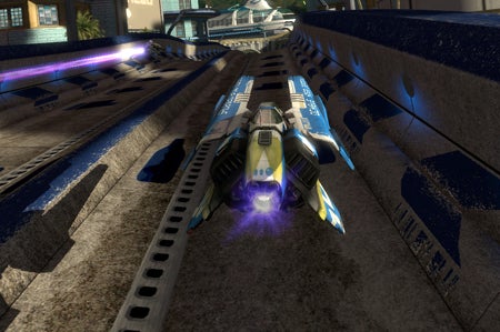 For this generously priced PS3 version (it's GBP 11.99), you get eight tracks culled from the two PSP titles, Pure and Pulse, both of which caused Tom to excitedly rub oily 9/10s all over their firm oak-like thighs. Vineta K, Anulpha Pass, Chengou Project, Sebenco Climb, Ubermall and Sol 2 all appear from WipEout Pure, and are joined by Moa Therma and Metropia from WipEout Pulse. More are planned as downloadable extras, of course.