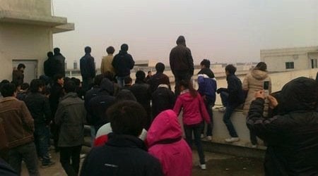 ORIGINAL STORY: Around 300 workers at a Foxconn manufacturing plant in Wuhan, China reportedly threatened to throw themselves en masse off the building's roof following a pay dispute earlier this month.