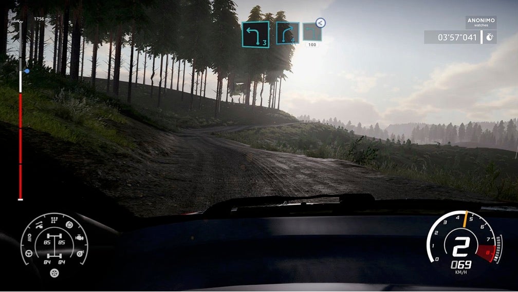 There's real beauty here too, found when sending your front wheels clipping through a patch of heather or seeing the late afternoon sun diffusing through dense forests before it splashes out across the wet tarmac. There's beauty, then, but not quite the performance as some of its peers, with it failing to hit 60fps as smoothly as Dirt Rally 2.0. That means an obvious knock-on effect with the feel of the thing - though it's not as if it ever feels bad.